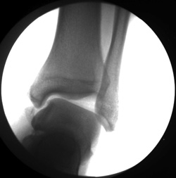 Stress x-rays. In addition to plain x-rays, your doctor may also order stress x-rays. These scans are taken while the ankle is being pushed in different directions. Stress x-rays help to show whether the ankle is moving abnormally because of injured ligaments.