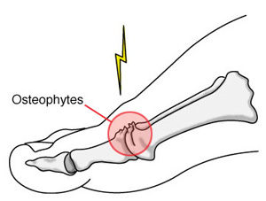 This surgery is usually recommended when damage is mild or moderate. It involves removing the bone spurs as well as a portion of the foot bone, so the toe has more room to bend. The incision is made on the top of the foot. The toe and the operative site may remain swollen for several months after the operation, and you will have to wear a wooden-soled sandal for at least two weeks after the surgery. But most patients do experience long-term relief.
