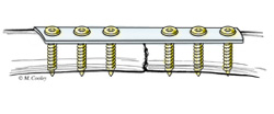 - Internal Fixation. Internal fixation stabilizes a nonunion. The surgeon attaches metal plates and screws to the outside of the bone or places a nail (rod) in the inside canal of the bone.