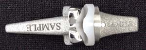An example of a finger joint prosthesis used in joint replacement surgery.