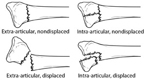 It is important to classify the type of fracture, because some fractures are more difficult to treat than others. Intra-articular fractures, open fractures, comminuted fractures, and displaced fractures (when the broken pieces of bone do not line up straight).are more difficult to treat, for example.