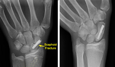 New DevelopmentsFor specific fracture patterns, some doctors are now using a very small incision —less than 1/2-inch long—to reduce the fracture and to place a screw in the aligned scaphoid. This procedure is performed using a special x-ray machine to help guide the placement of the screw.