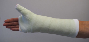 For this type of fracture, your doctor may place your forearm and hand in a cast or a splint. The cast or splint will usually be below the elbow and include your thumb.