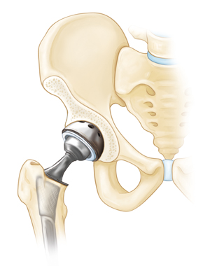 Total hip replacement. Your doctor will remove both the damaged acetabulum and femoral head, and then position new metal, plastic or ceramic joint surfaces to restore the function of your hip.