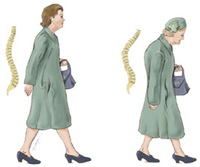 Loss of height and a stooped appearance of a person with osteoporosis results from partial collapse of weakened vertebrae.