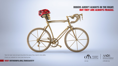 The new AAOS public service campaign "Riders Aren't Always in the Right. But They Are Always Fragile" highlights the importance of being aware of bicyclists on the road.