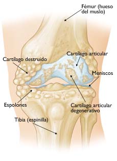Cuando el cartílago se desgasta por completo, los huesos se frotan una contra otro. Y, para compensar la pérdida de cartílago, los huesos dañados pueden comenzar a crecer y formar dolorosos espolones.