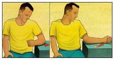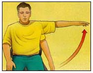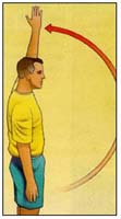 Péndulo Circular:Incline hacia delante desde la cintura a 90 grados, utilizando un punto de apoyo con su otra mano. Realice un movimiento circular con su brazo en el sentido de las manecillas del reloj, repetirlo 10 veces y después otras 10 veces en sentido contrario a las manecillas del reloj. Repita el mismo ejercicio 3 veces al día.