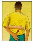 Rotación Interna del Hombro (Activa):Lleve su mano detrás de la espalda y hacia el lado opuesto. Repetir 10 veces. Realizarlo 3 veces al día.
