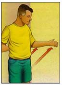 Extensión del Hombro (Isométrica):Colóquese con la espalda contra la pared y sus brazos rectos hacia los costados. Manteniendo los codos derechos, empuje sus brazos contra la pared durante 5 segundos y luego relaje. Repetirlo 10 veces.