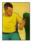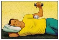 Rotación Interna del Hombro:Mantenga su codo doblado a 90 grados. Sosteniendo una pesa ligera, eleve su mano hacia el estómago y regresando lentamente. Repetir 10 veces. Realizar este ejercicio 3 veces por día.