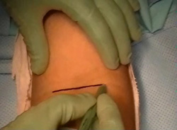 One method for reattaching the tendon is through a single incision at the inside of the elbow.