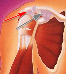 If the force is severe enough, the ligaments attaching to the underside of the clavicle are torn. This causes the "separation" of the collarbone and wingbone. The wingbone actually moves downward from the weight of the arm. This creates a "bump" or bulge above the shoulder.