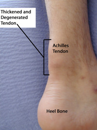 Tiny tears in the Achilles tendon cause it to swell and thicken.