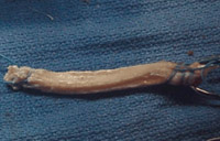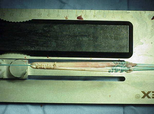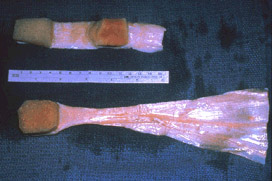 Patellar tendon (top) and Achilles tendon (bottom) allografts prior to being prepared for ACL resonstruction.