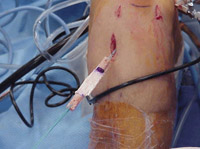 The patient, the surgeon, and the anesthesiologist select the anesthesia used for surgery. Patients may benefit from an anesthetic block of the nerves of the leg to decrease postoperative pain.