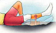Lie on your back, with uninvolved knee bent, straighten your involved knee. Slowly lift about 6 inches and hold for 5 seconds. Continue lifting in 6-inch increments, hold each time. Reverse the procedure, and return to the starting position.
