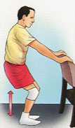 Stand supporting yourself with the back of a chair. Bend your uninvolved leg with your toe touching for balance as necessary. Slowly lower yourself, keeping your foot flat. Do not overdo this exercise. Straighten up to the starting position. Relax.
