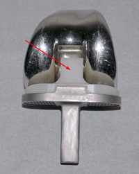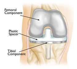 The tibial component has a raised surface with an internal post that fits into a special bar (called a cam) in the femoral component. These components work together to do what the PCL does: prevent the thighbone from sliding forward too far on the shinbone when you bend your knee.