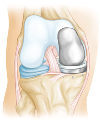 In a unicompartmental (partial) knee replacement, only the damaged part of the knee is replaced.