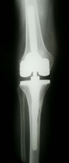 In cases where the knee is very unstable and a large amount of bone is missing, it may be necessary to join the femur and tibia with a metal "hinge" in the center.