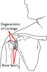 This is an age-related "wear and tear" type of arthritis. It usually occurs in people 50 years of age and older, but may occur in younger people, too. The cartilage that cushions the bones of the shoulder softens and wears away. The bones then rub against one another. Over time, the shoulder joint slowly becomes stiff and painful.